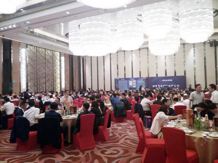 ▲ 一天的會(huì)議之后,湖南勇電公司總經(jīng)理朱佳榮在歡聚晚宴上致辭